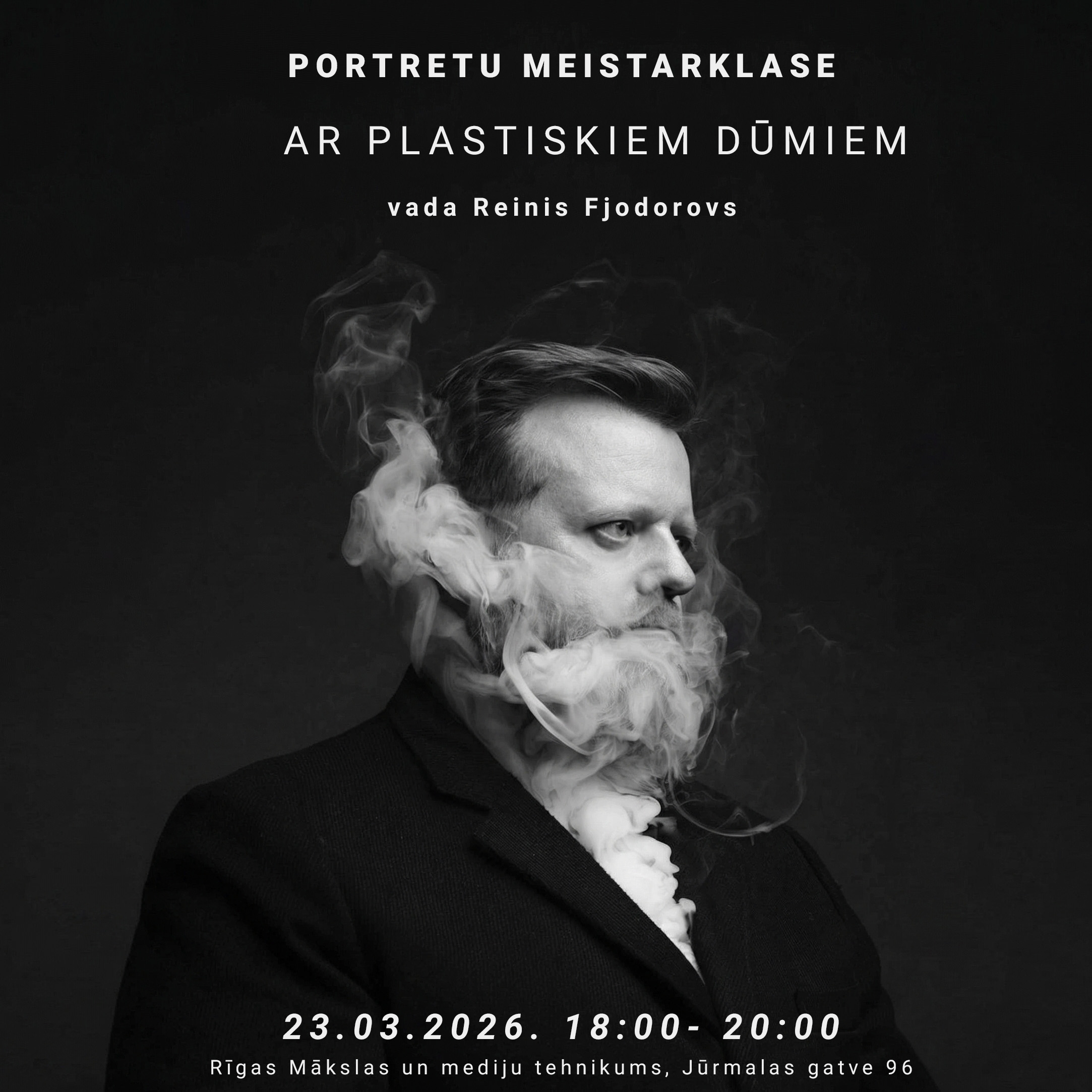 Šajā meistarklasē iepazīsim, kā dūmus izmantot kā vizuālu elementu portreta fotogrāfijā. Strādāsim studijā ar modeli un Smoke Ninja Pro, veidojot plastiskas dūmu formas un atmosfēru ap portreta tēlu. Katram dalībniekam būs iespēja individuāli pastrādāt ar modeli.
